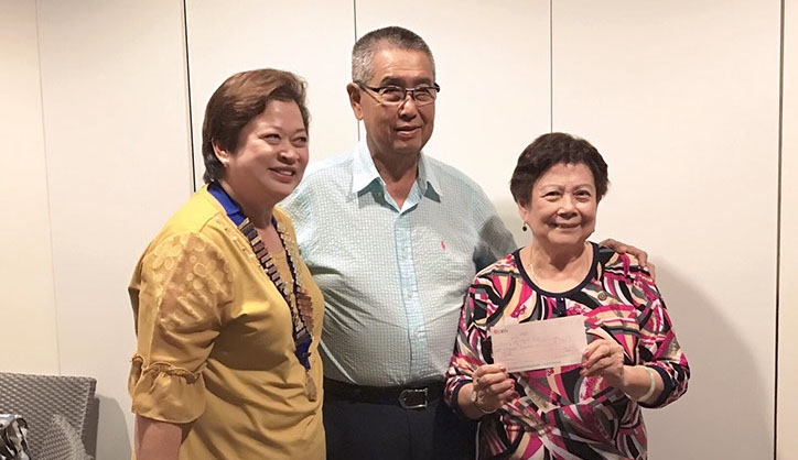 A cheque of $15,000 was presented to the President of the Society of the Aged from monies raised & donations from members.