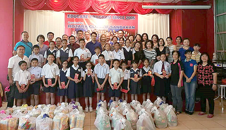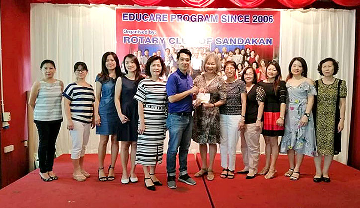 Handing over of sponsorship cheques to President of Rotary Club of Sandakan towards their Educare project –– a project to give assistance to school children under their Educare program.