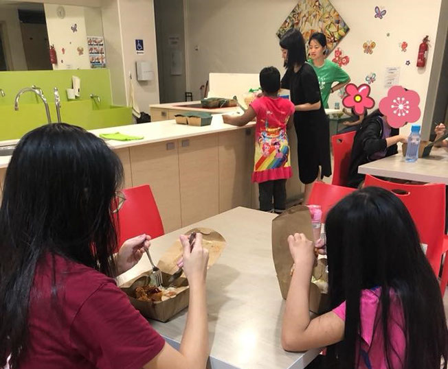 Children enjoying a packet meal in GSC Dining room