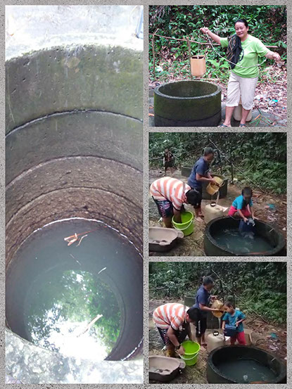 One of the deep water wells in the village and how the villagers draw the much needed water from an open well. (Far Left) Quality of the well water.