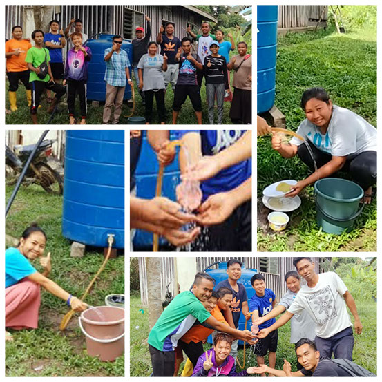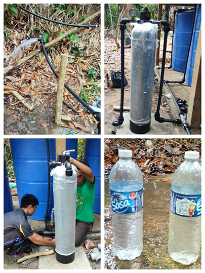 WE HAVE CONNECTION! Water gushing out from the pipe now connected to the water pump, and the installation of the water filtration system.